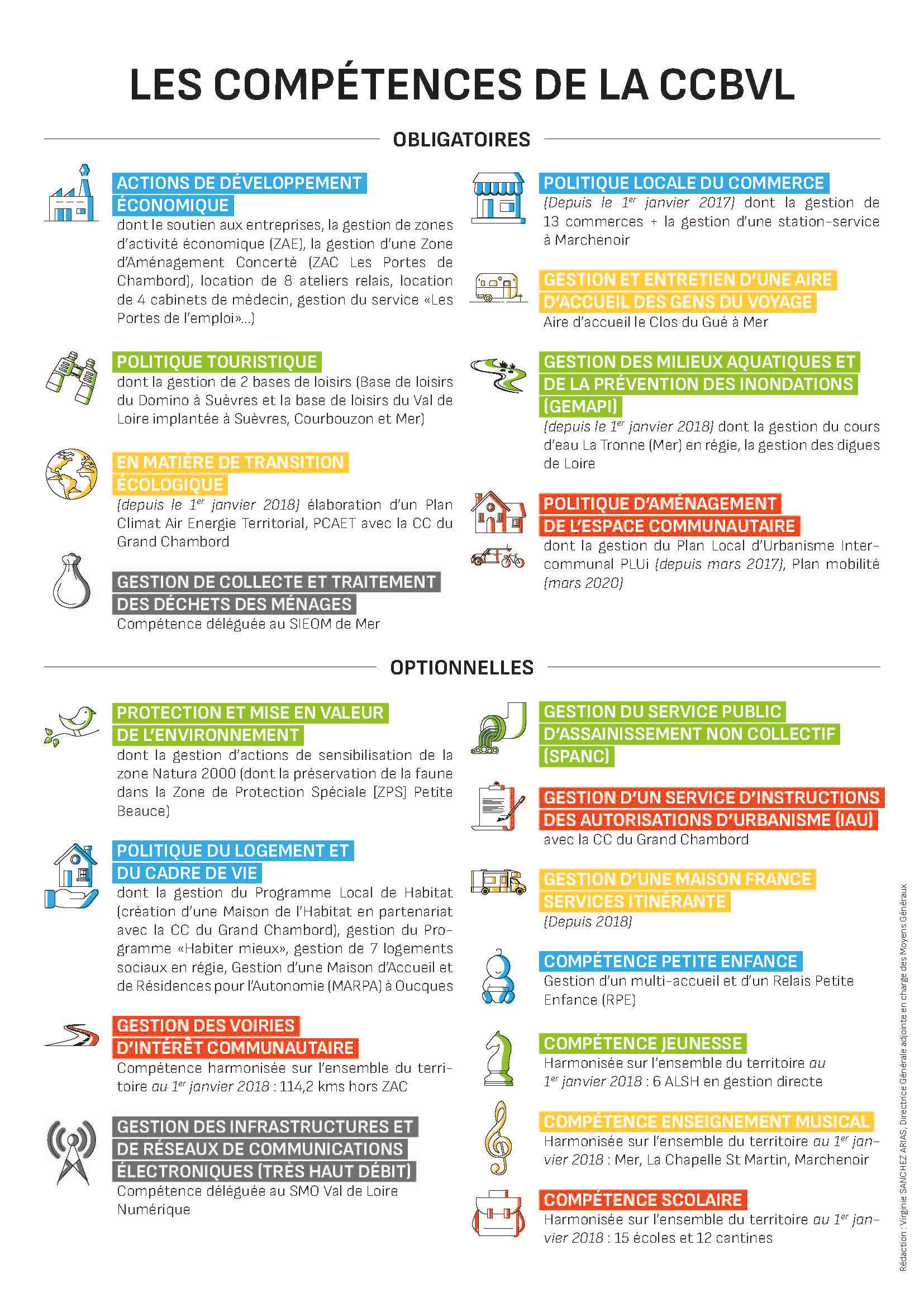 La Communauté de communes Beauce Val de Loire s'inscrit dans une démarche de cohérence territoriale, économique et géographique. Elle est compétente dans les domaines où les communes lui ont confié une capacité d'intervention, le plus souvent complémentaire à leurs propres actions, soit qu'elle les facilite, soit qu'elle les améliore, soit encore qu'elle permette une mutualisation des moyens.